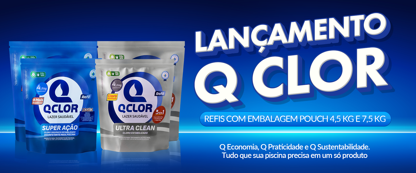 Líderes desde 1994 no tratamento de águas de piscinas, a Q Clor combina tecnologia, sustentabilidade e inovação para assegurar seu lazer com responsabilidade ambiental. Descubra como nossos produtos garantem uma água cristalina e segura.